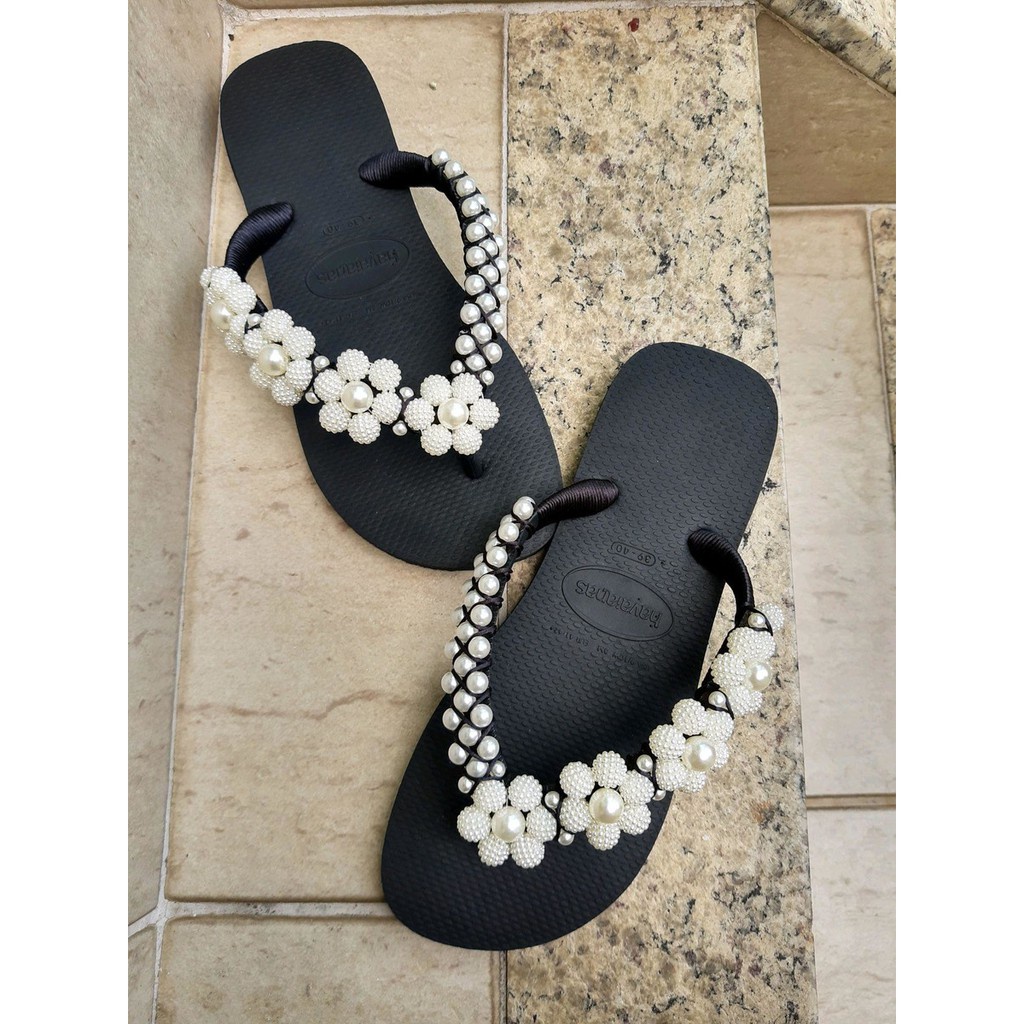 Product Item: Sandalia havaiana sales preta decorada